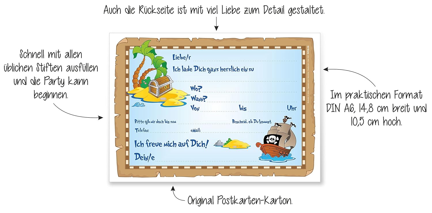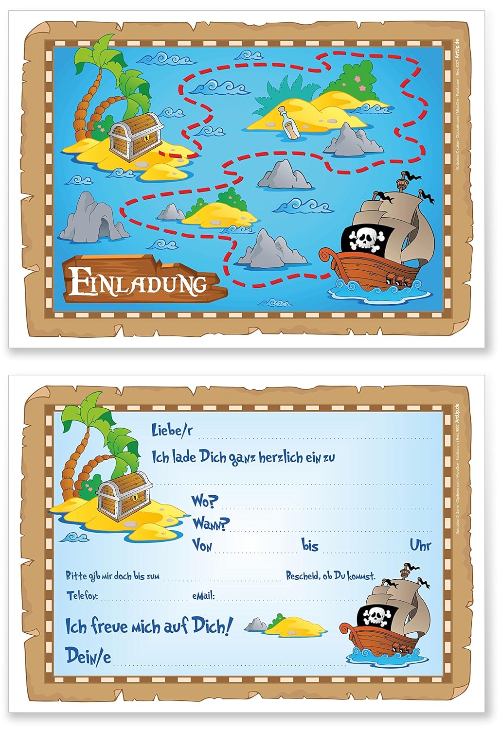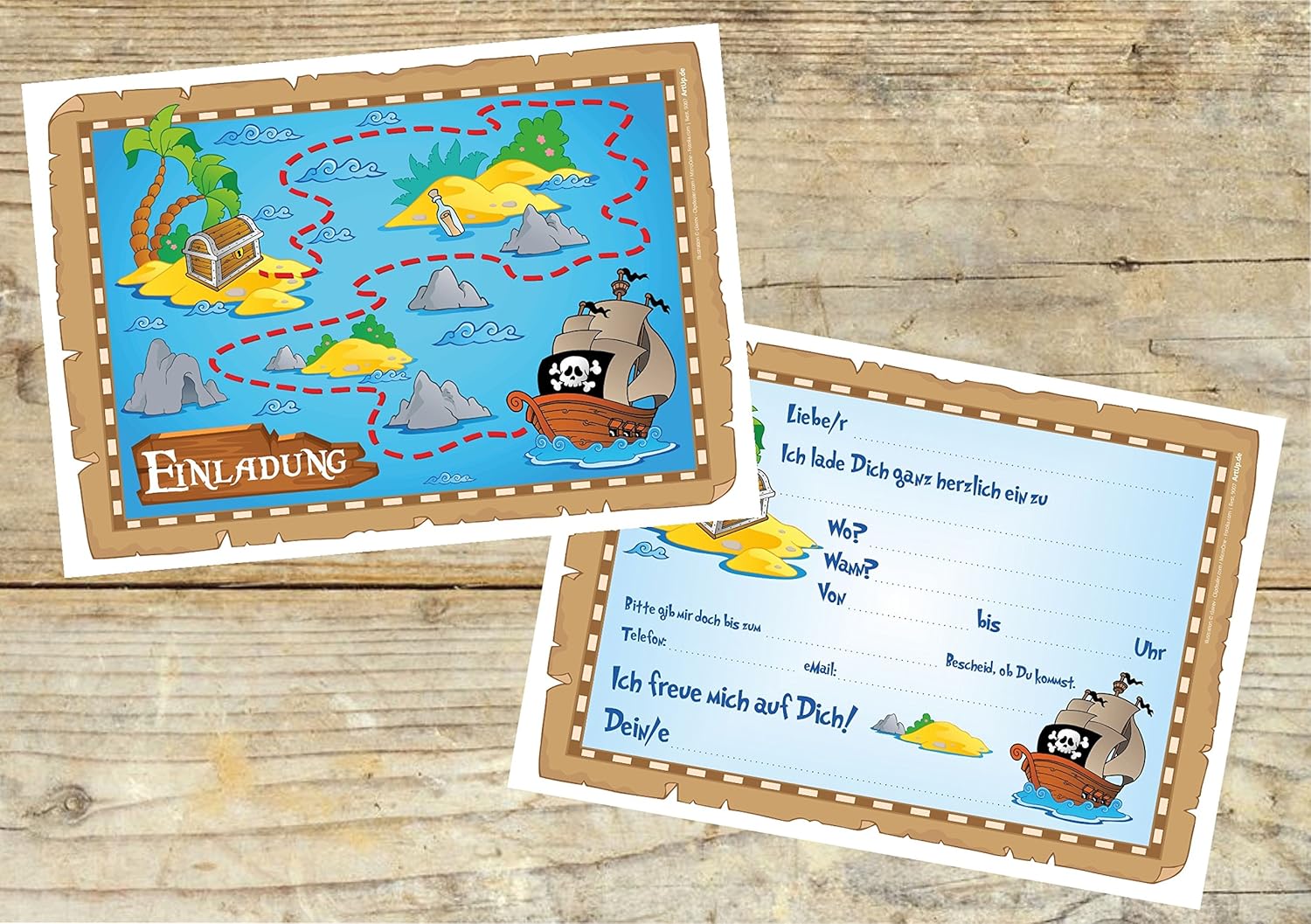 Per Ragazzi Lingua Italiana Non Garantita Set Da 12 Biglietti Di Invito Per Feste Di Compleanno Per Bambini A Tema Pirati In Lingua Tedesca Bambini Ragazze Biglietti E Cartoncini Biglietti Di Auguri