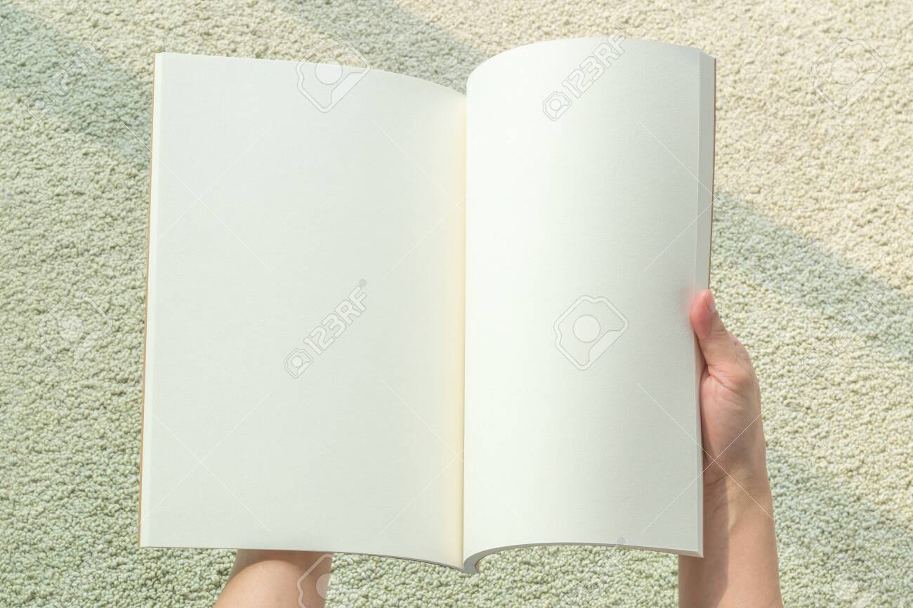 Blank Open Book Mockup Template In Woman S Hands With Paper Texture Stock Photo Picture And Royalty Free Image Image