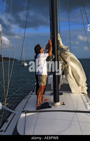 A questo punto la randa per l’attrito esercitato dalla drizza in acqua, scenderà da sola gradualmente per darvi il tempo di andare all’albero a sistemare la vela nel Lazybag Il peso della cima della drizza in acqua controbilancerà infatti la caduta per gravità della randa con l’effetto di evitare spiacevoli incastri nel Lazy jack. Dyneema, Doppietreccie e Corde per la Vela, Sport. Bluewaters, Cagliari Picture issare la randa?.