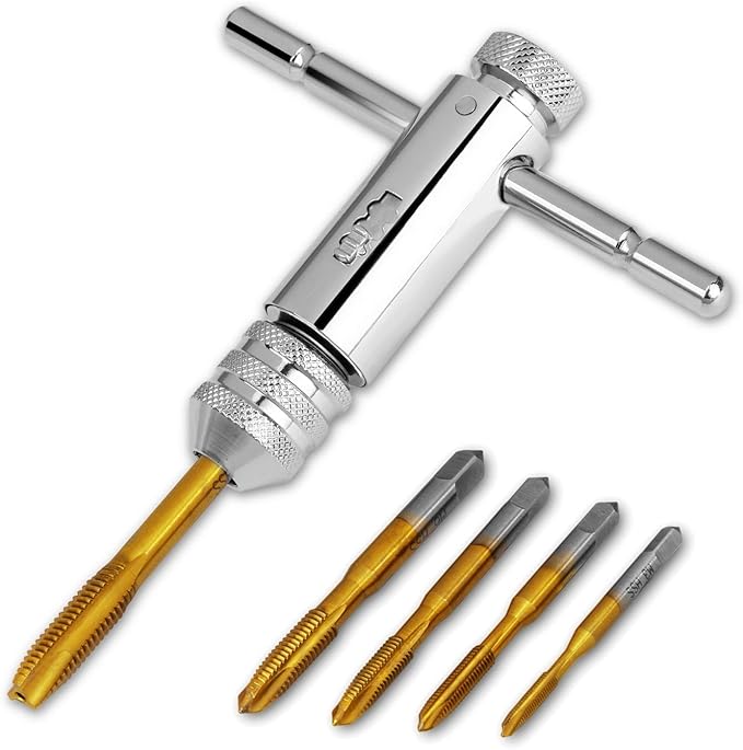 Set Di Maschi Con Filettatura Destrorsa Con Giramaschi Con Impugnatura Mobile Hss Rivestito In Titanio M3 M8 Fortag Maschi Per Fresatura Di Filetti Maschi E Filiere