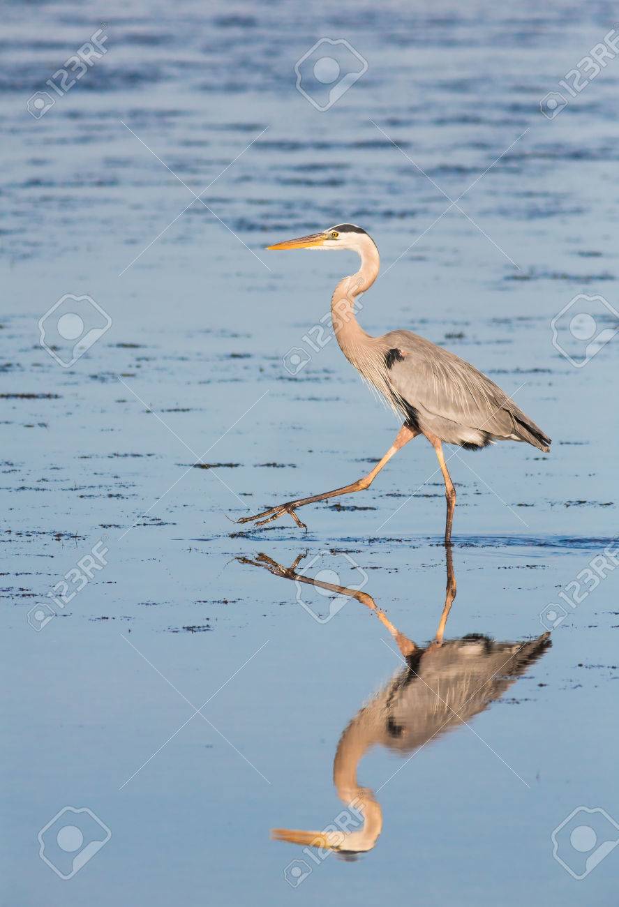 Un Grand Heron Un Oiseau Patauger Trouve En Amerique Du Nord Se Reflete Dans Une Piscine D Eau Salee Banque D Images Et Photos Libres De Droits Image 3567