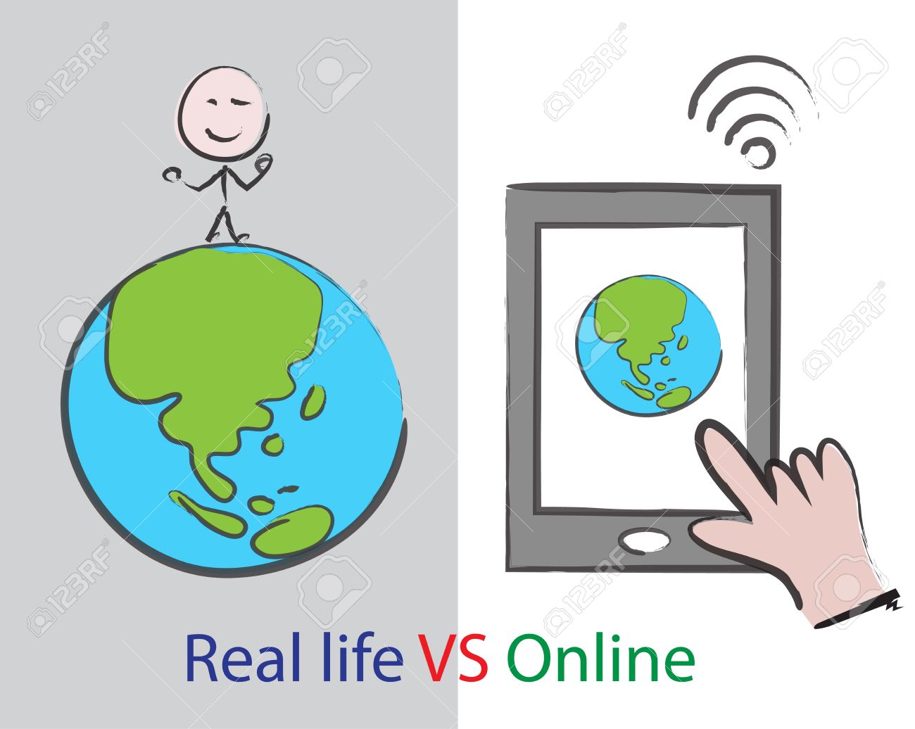 World Of Real Life Vs Online Concept Social Media And Internet Royalty Free Cliparts Vectors And Stock Illustration Image