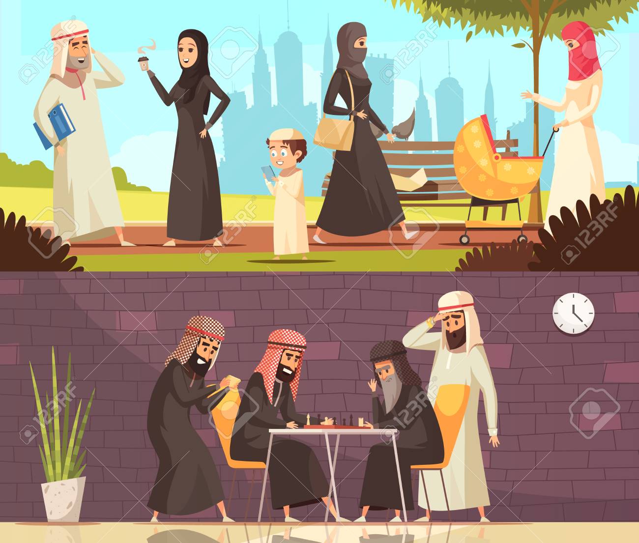 Arab Muslims Traditional Family And Social Life With Playing Royalty Free Cliparts Vectors And Stock Illustration Image