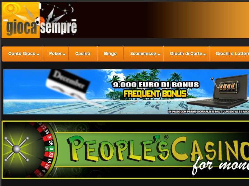 Scommesse sportive ed ippiche, classifiche calcio, risultati live, download quote, news Benvenuto nel portale della Sport and Gambles Agenzie Scommesse Scommesse sportive ed ippiche, classifiche calcio, risultati live, download quote, news info@sportandgamblesit 18 Giocare può causare dipendenza patologica. Giocasempreit is an online poker room operated in the Peoples Network network Users registering an account here can play poker games and tournaments in a poker software client provided by Microgameit The software can be downloaded and installed from wwwgiocasempreit Recommended Online Poker Bonuses. Trova oggi i coupon e le offerte per Gioca Sempre direttamente nel suo sito ufficiale.
