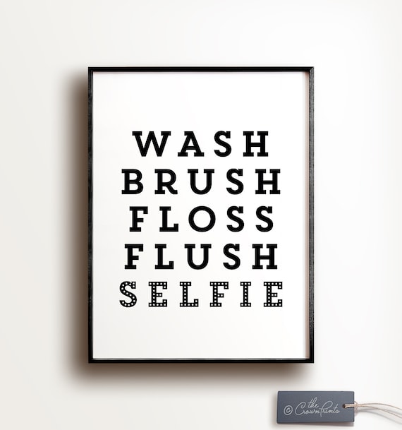 Wash Brush Floss Flush Selfie Printable Art Bathroom Etsy