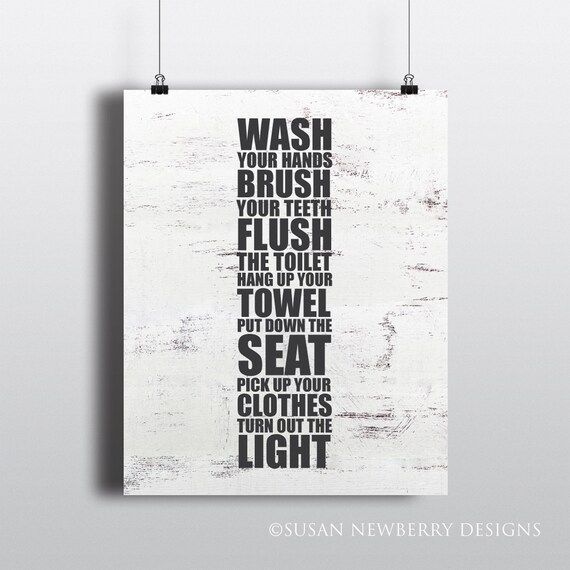Bathroom Rules Print Or Canvas Bathroom Wall Art Wash Brush Etsy