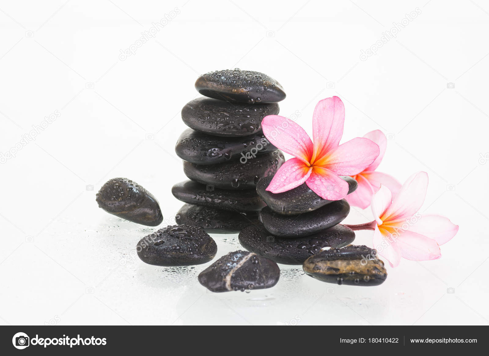 Plumeria Flowers Black Stones Water Drops Close Stock Photo C Calvste