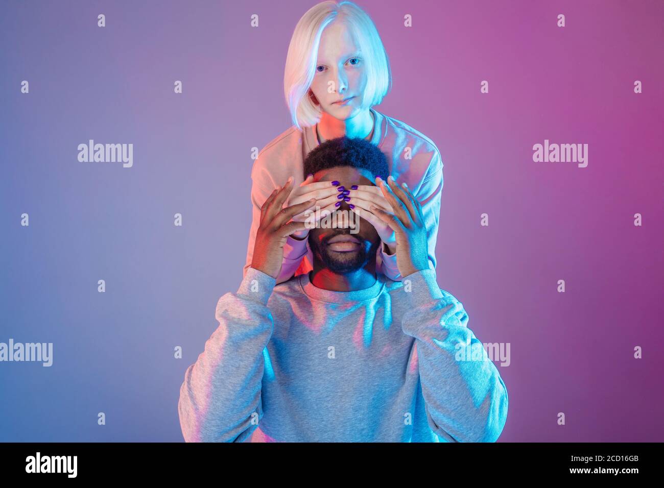 Man Trying To Guess Who Is Closing His Eyes Nightmare Man Having A Dream Imagination Concept Ghost Isolated Purple Background Stock Photo Alamy