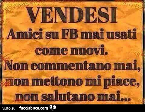 Vendesi Amici Su Fb Mai Usati Come Nuovi Non Commentano Mai Non Mettono Mi Piace Facciabuco Com