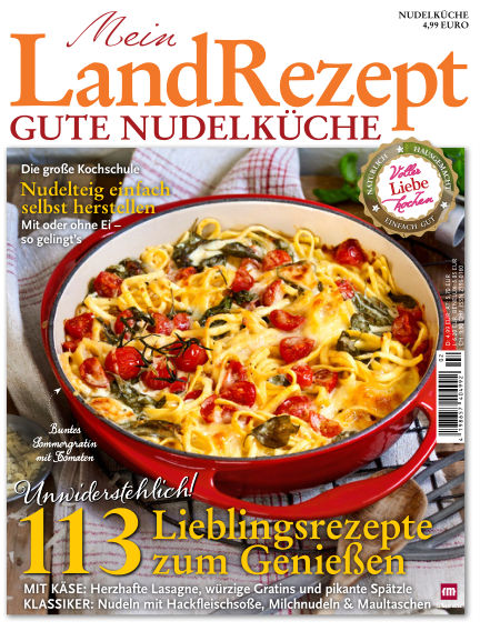 „Mein LandRezept“ widmet sich in jeder Ausgabe einem vollkommen neuen Thema Ob Brot, Kräuter, Tomaten, Beeren, Kartoffeln, Nudeln, Fleisch, Käse, Schokolade oder Eingemachtes – zu jedem Thema überzeugt das Magazin mit über 100 Rezepten.