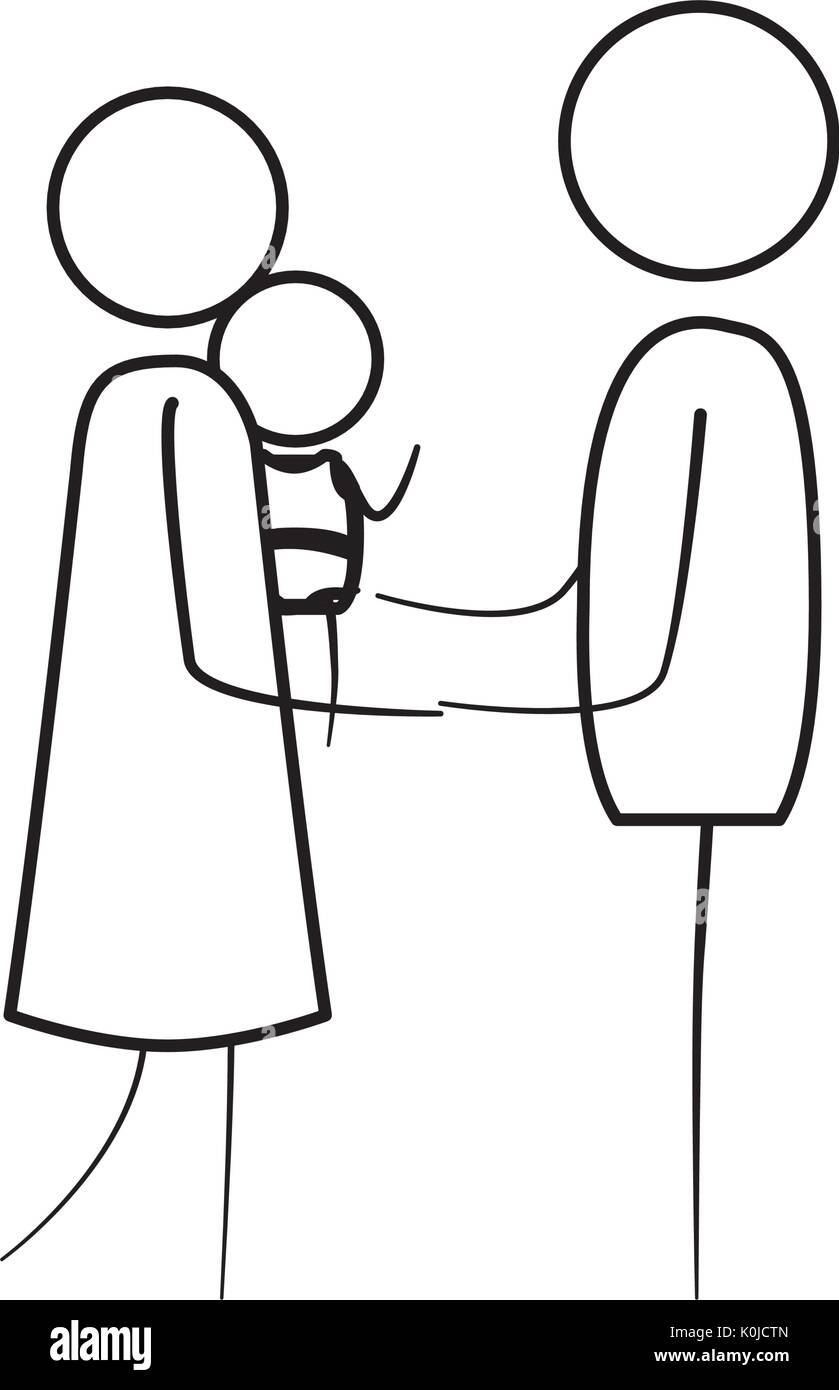 Disegno Del Contorno Sottile Di Pittogramma Donna Che Porta Un Bambino E Tenendo Le Mani Dell Uomo In Abiti Immagine E Vettoriale Alamy