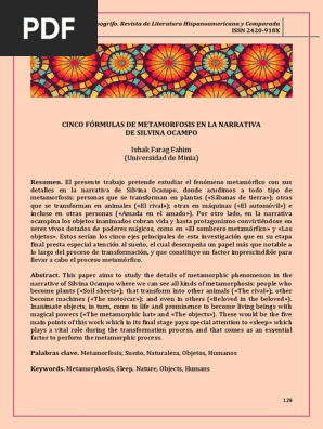 Cinco Formulas De Metamorfosis En La Narrativa De Silvina Ocampo Pdf Shiva Amor