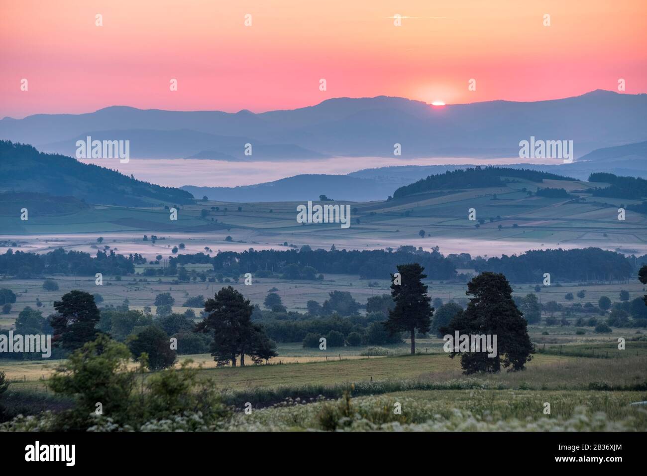 France Haute Loire Cayres Landscape Of Deves Plateau Sunset Over Loire Valley Stock Photo Alamy