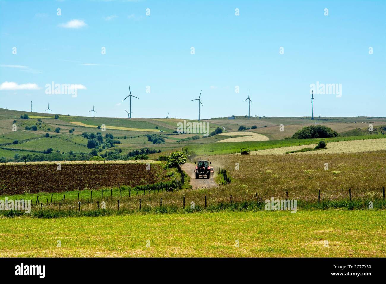 Tractor And Wind Turbine Ally Plateau Haute Loire Auvergne France Stock Photo Alamy