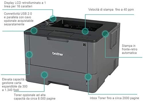 Brother Hll50dw Stampante Laser Bianco E Nero Velocita Di Stampa 40 Ppm Stampa Fronte Retro Automatica Scheda Di Rete Cablata E Wifi Amazon It Informatica