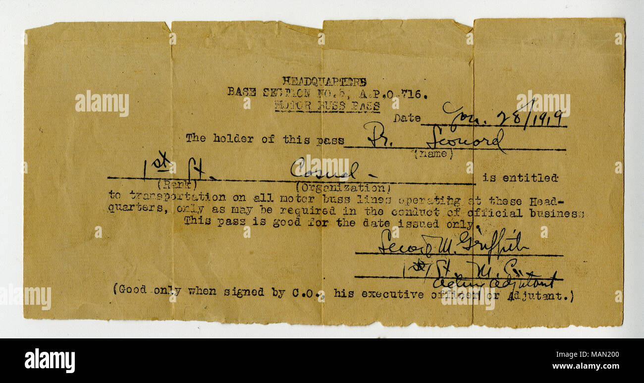 C Est Un Laissez Passer D Autobus A Moteur Delivre A Mme Esther E Leonard Le