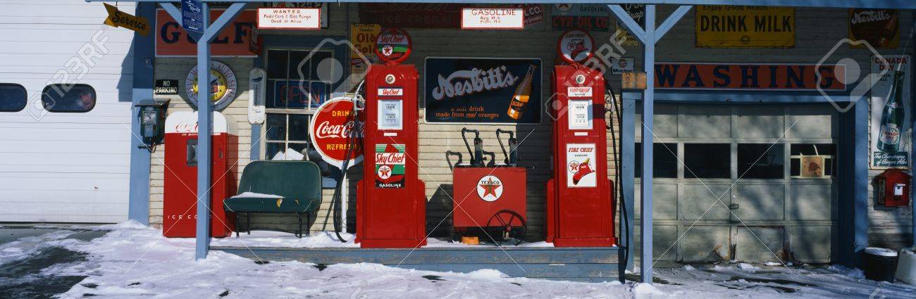 This Is A Vintage Gas Station With Old Style Pumps That Are Red Stock Photo Picture And Royalty Free Image Image