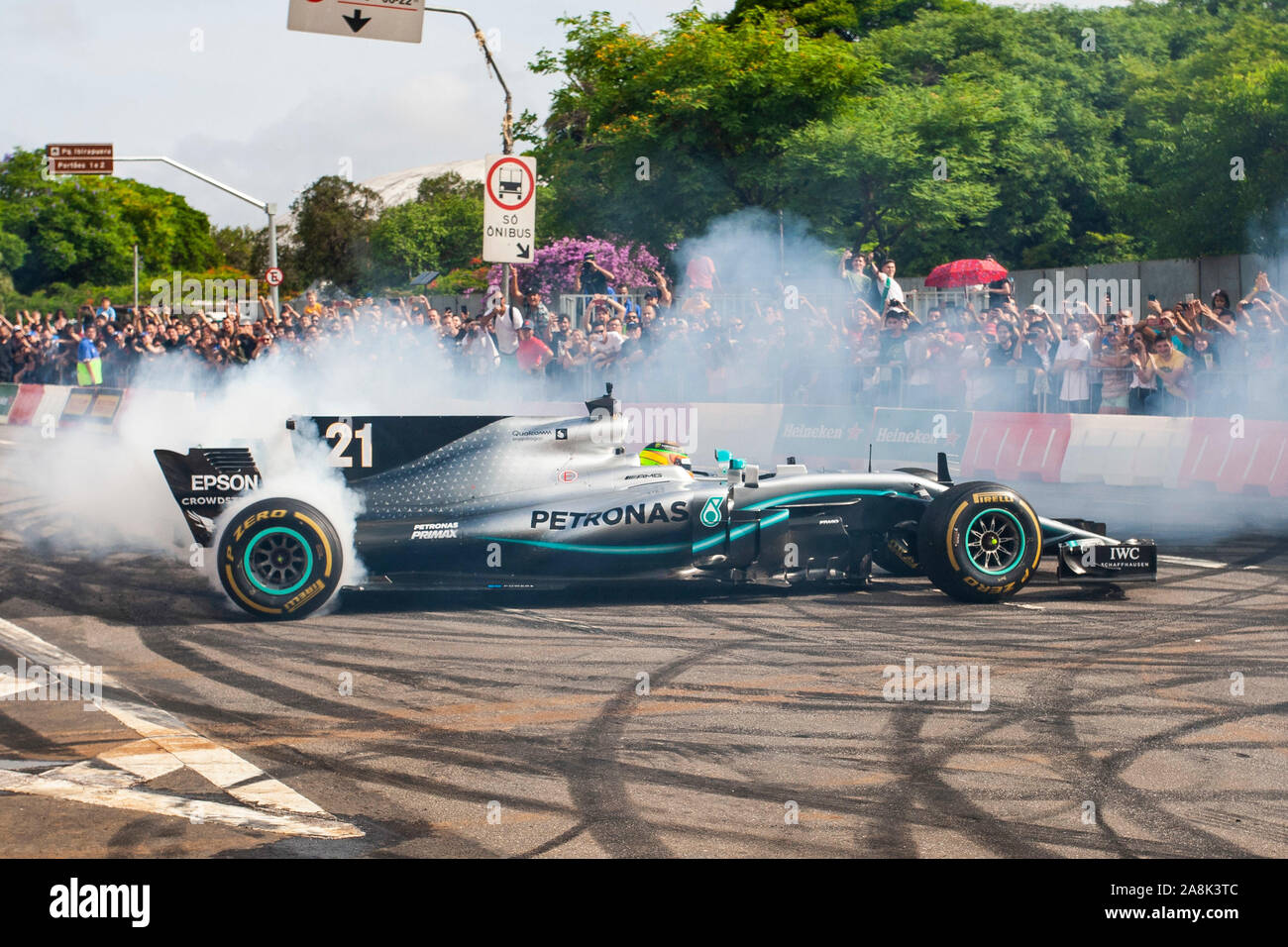 Sao Paulo Brazil 09th Nov 19 Pilot Esteban Gutierrez Accelerates Mercedes 17 During The Heineken F1 Festival Senna Tribute Held At Ibirapuera Park In Sao Paulo Sp The Event Set Up To