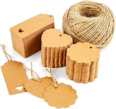 Vegena Etichette Regalo 300 Pezzi Etichette In Carta Kraft Etichette Cartoncino Craft Hang s Bagagli Etichetta Vuoto Mestiere Con Iuta 100 M Per Matrimonio Battesimo Natale Compleanno Fai Da Te