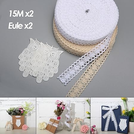 Hobby Creativi King Do Way 2 X15 M Punta Band Borte Con 2 Dolce Gufo Vintage Cotone Pizzo 1 Bianco 1 Beige Mestiere Scrapbooking Cucito Pizzo All Uncinetto Con Nappine Decorazione Casa