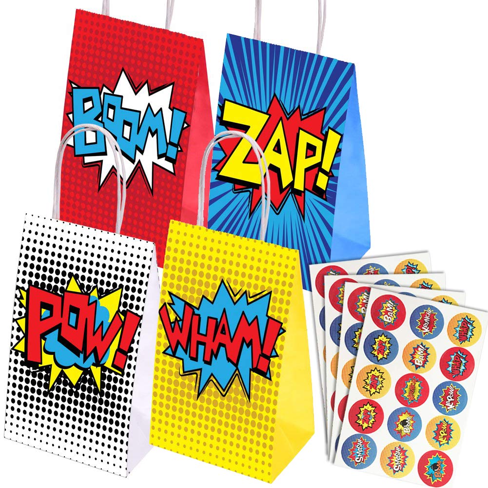 Sacchettini Bomboniere Per Feste Di Compleanno Yizeda Confezione Da 16 Sacchetti Da Supereroe Per Party E 60 Pezzi Adesivi Da Supereroe Per Party Di Supereroi Giochi E Giocattoli