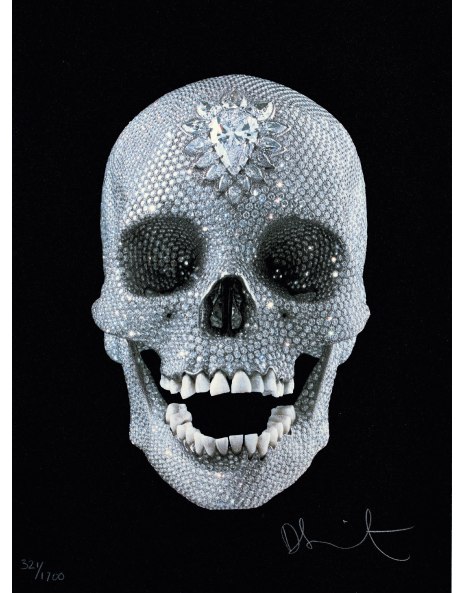 “For The Love of God” Diamond Skull by Damien Hirst represented a monumental piece by the critically acclaimed British artist who’s life/death themed pieces have always garnered a lot of attention. Nevertheless, even by his ambitious standards, the diamondencrusted skull, entitled 'For the Love of God', is a risky undertaking The cost of making it will inevitably be reflected in the selling. The 'For The Love Of God' Skull is a silkscreen print with diamond dust by Contemporary Master Damien Hirst Created in 07, the limited edition print is one of only 1,000 in existence This piece depicts the famed 18th century platinum cast human skull with 8,601 flawless diamonds encrusted in the sculpture.