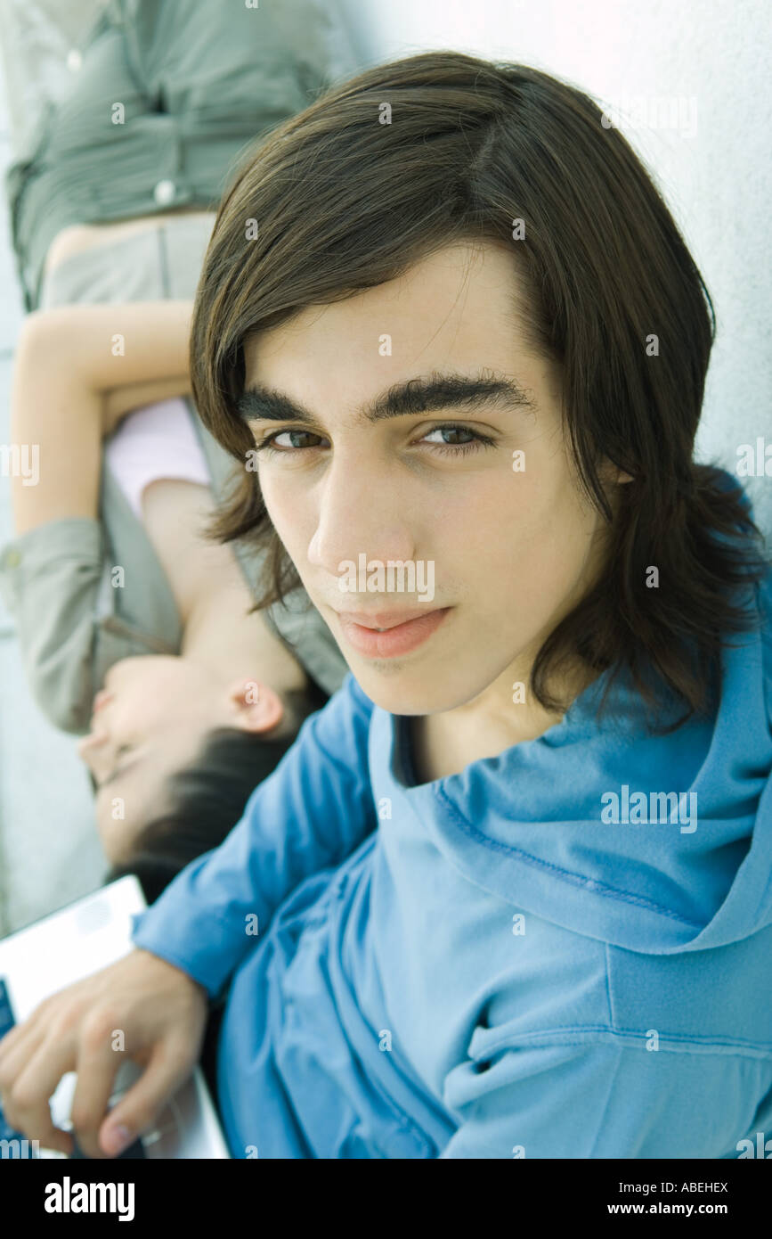 Teen Boy Looking At Camera While Female Friend Lies On Back Stock Photo Alamy