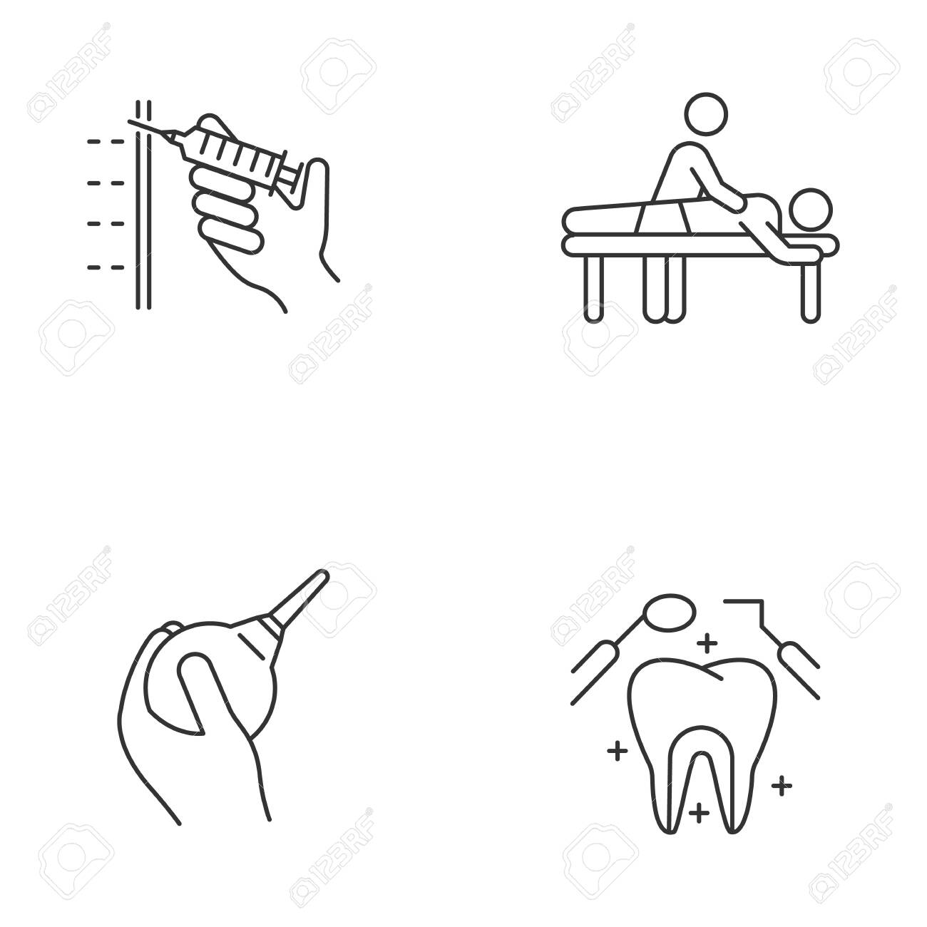 Medical Procedure Linear Icons Set Injection With Syringe Massage Lavement Dental Care Oral Health Clinical Aid Thin Line Contour Symbols Isol Stock Vector Image Art Alamy