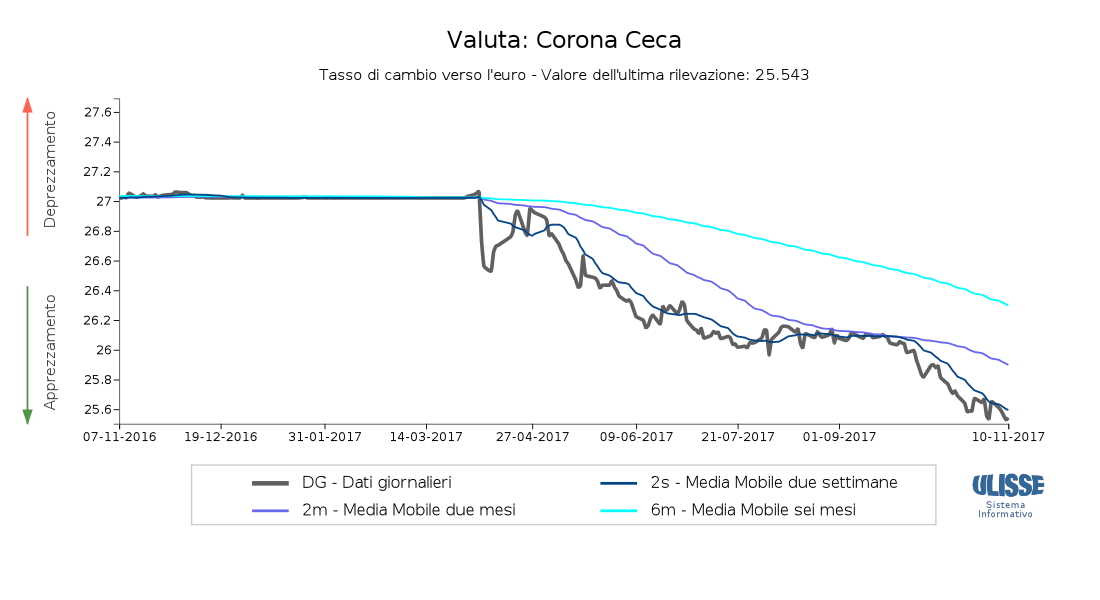Tasso Di Cambio Euro Corona Ceca Eur Czk Di Oggi Storico Grafici