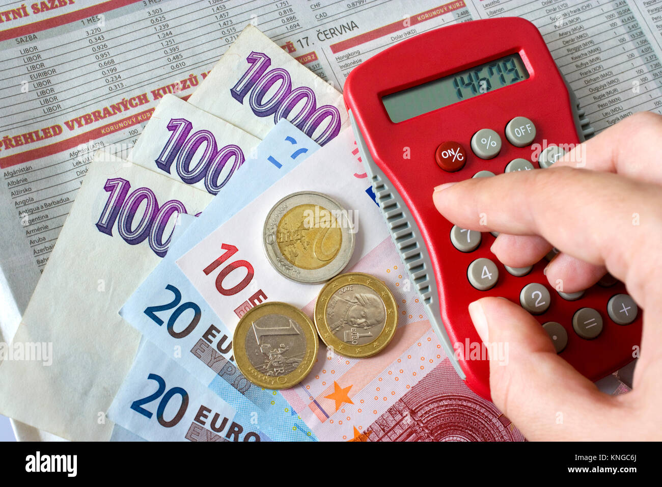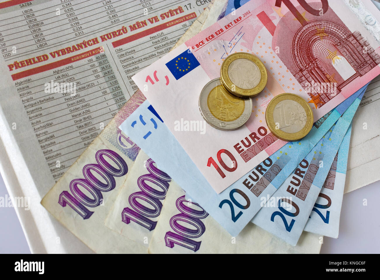 Tasso Di Cambio Soldi Dell Euro E Corona Ceca Fotografia Stock Immagine Di Cambiamento Finanza