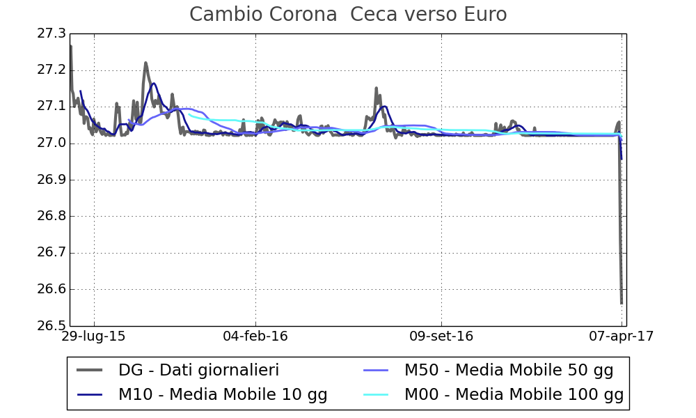 Cambi di riferimento delle ore 14,15 del giorno 31/12/15 Rilevati secondo le procedure stabilite nell'ambito del Sistema europeo delle banche centrali Tabella dei cambi Dollaro USA1,07Yen131,07Lev bulgaro1,9558Corona ceca27,023Corona danese7,. Ha per capitale la città di Praga e conta una popolazione di circa 11 milioni di persone. Visualizza i tassi di cambio correnti per la coppia Euro e Corona ceca I tassi di cambio delle valute si aggiornano ogni giorno e utilizzano tassi medi basati sul tasso di cambio internazionale di fiducia Utilizza il convertitore di valuta per calcolare qualsiasi importo da EUR a CZK tasso di cambio con tabelle di confronto, grafico cronologico.