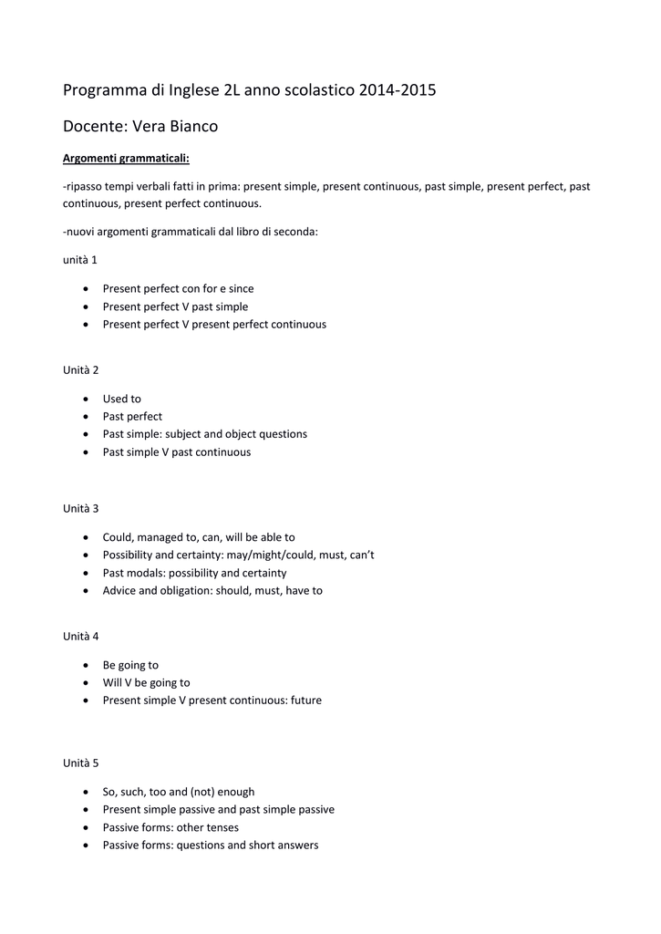 Programma Di Inglese Liceo Scientifico Statale Renato Caccioppoli