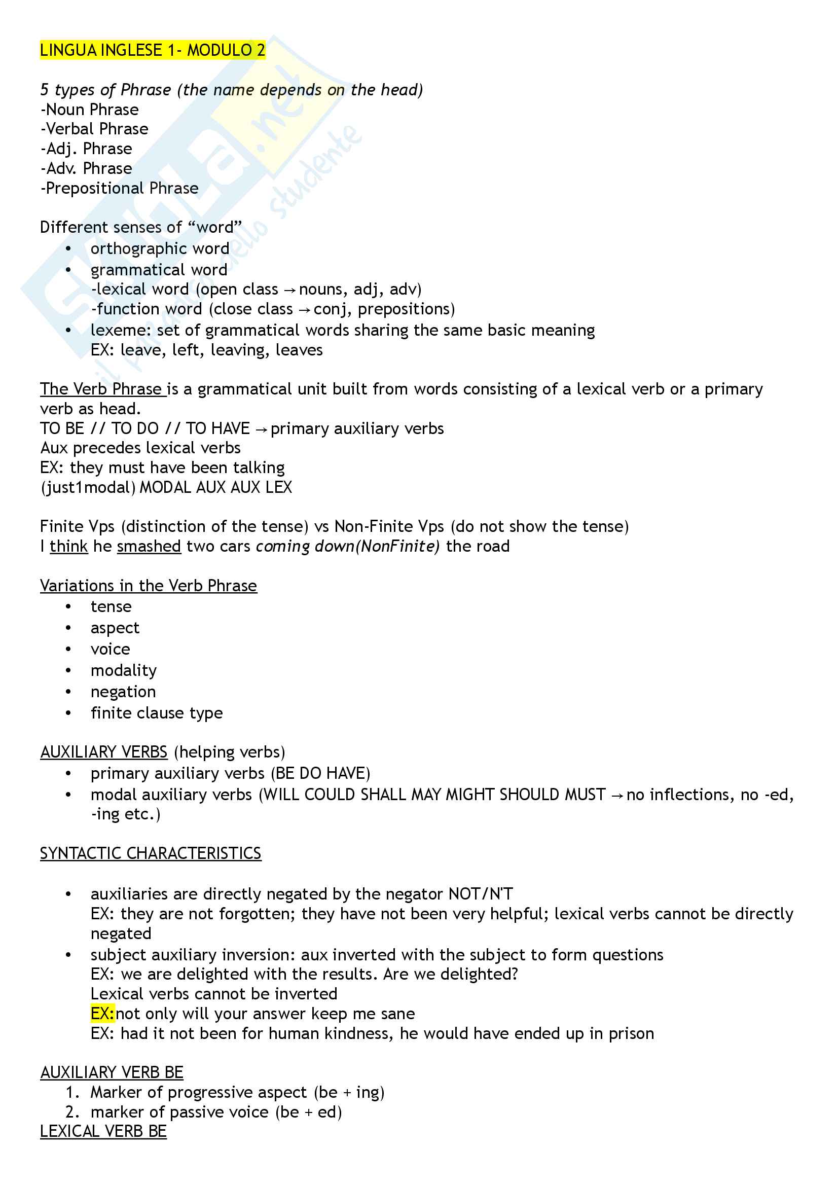 Appunti Di Lingua Inglese 1 Verb Forms Valency Patterns Passive Form