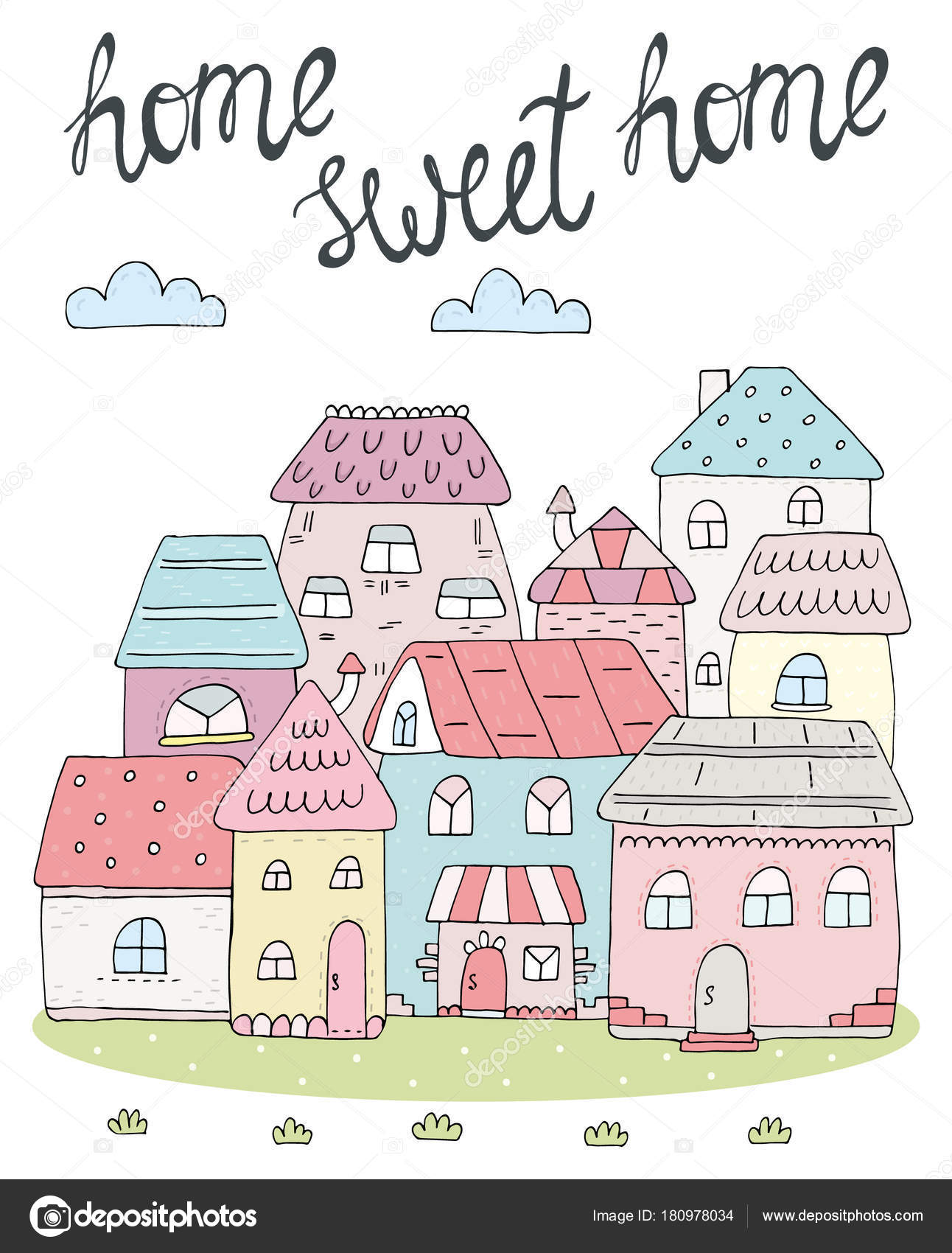 Home Sweet Home Card Hand Drawn Colorful Houses Vector Illustration Stock Vector C I Boiko08 Gmail Com