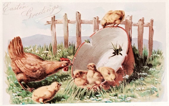 Cartolina Di Pasqua Dell Annata Mamma Chioccia Con I Suoi Etsy