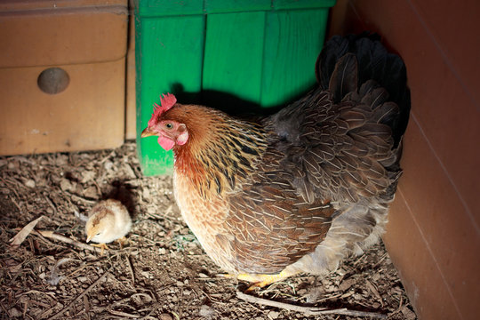 Pulcino Guardando Mamma Chioccia Con Pulcini Nascosto Sotto Fotografie Stock Freeimages Com