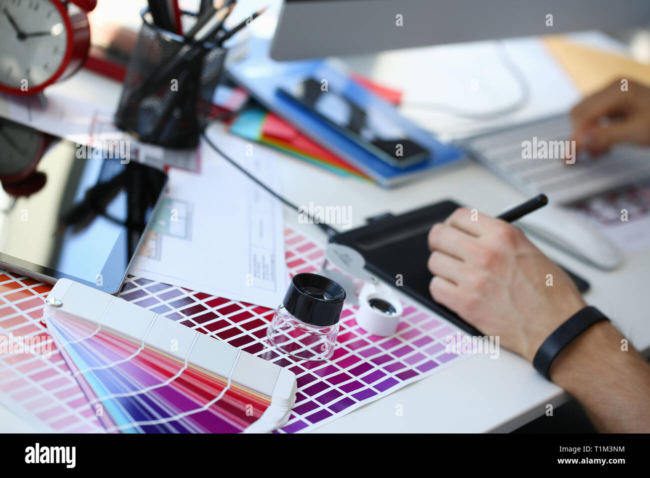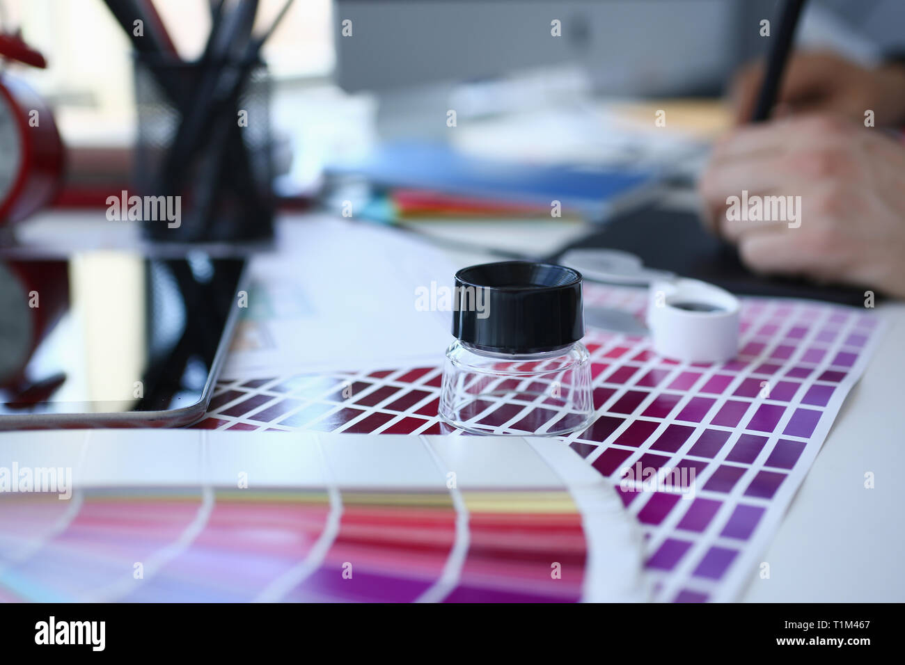 Prova Di Stampa Pagina Di Carta Con Colore Test Design Fiocco E Lente Di Ingrandimento Foto Stock Alamy