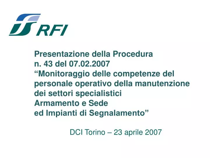 Ppt Presentazione Della Procedura N 43 Del 07 02 07 Powerpoint Presentation Id