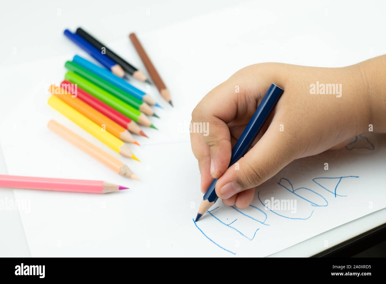 Kids Hand Holding Pencil On Immagini E Fotos Stock Alamy