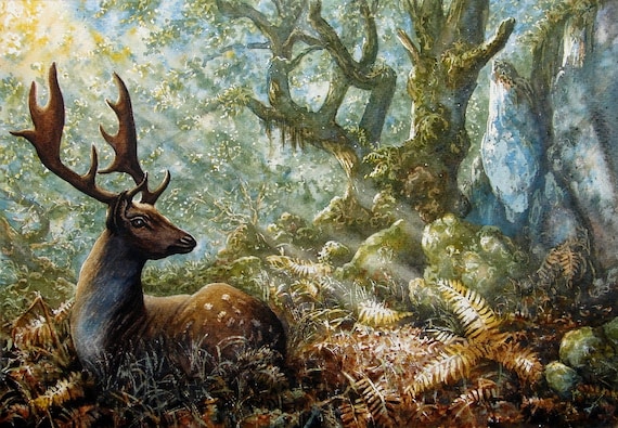 Re Della Foresta Fallow Deer Stag Di Andrew Bailey Dipinti Etsy