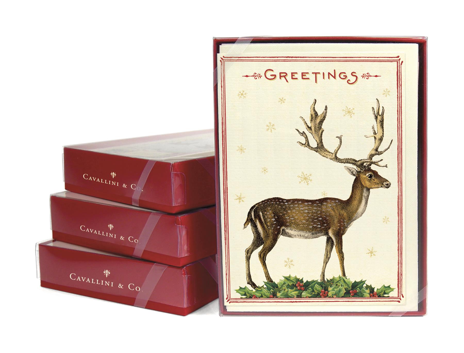 Cavallini 10 X Natale Biglietti Di Auguri Note Natale Cervo Cervo Ebay