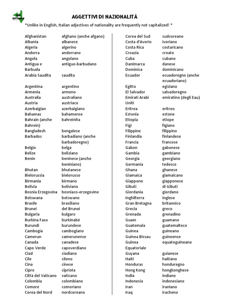 Eoileonitaliano Basico 1 Aggettivi Di Nazionalita
