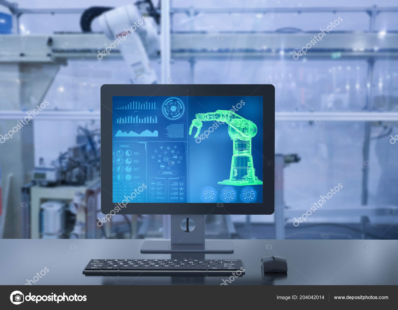Rendering Computer Display Automation Robot System Factory Stock Photo C Phonlamai