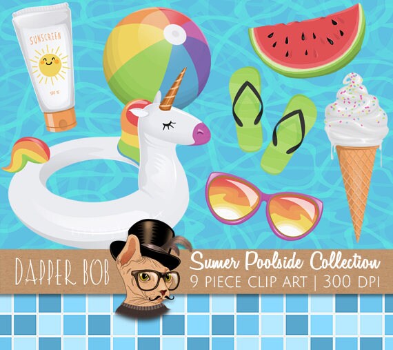 Summer At The Pool Clipart Collection Swimming Party Unicorn Etsy