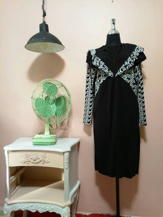 Black And White Dress Long Dress70s Dressblack With Muslin Etsy