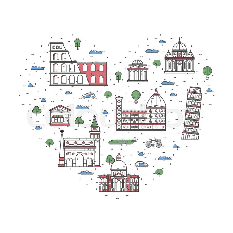 Vector Illustration Of Famous Italian Architecture And Attractions I Love Italy Horizontal Greeting Card Premium Vector In Adobe Illustrator Ai Ai Format Encapsulated Postscript Eps Eps Format