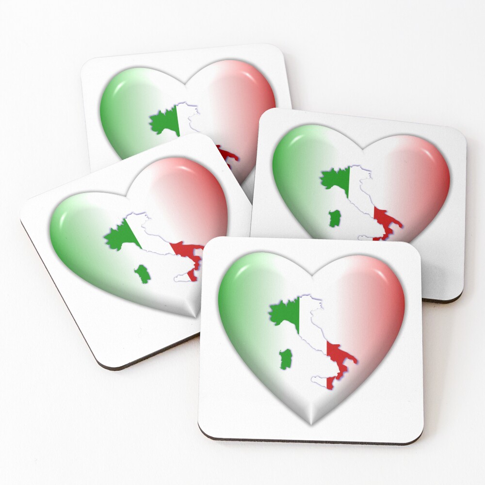 I Love Italy Clothing Mugs Home Decor Heart With Italian Flag Colors Italian Colors I Heart Italy Italy In My Heart Italy Map Inside A Heart Coasters Set Of 4 By Gtrends