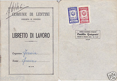 Libretto Di Lavoro Con Rare Marche Amministrative Di Lentini 1969